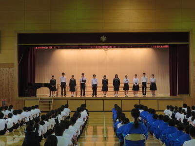 新体制の幕開け ~生徒朝会で後期専門委員長より挨拶~ 投稿: 菅谷中教職員 (10/23) 10月23日(木)の生徒朝会で、後期専門委員長たちの紹介と挨拶がありました。 本校では後期から2年生が委員長となります。すべての人が初めての経験となるため、不安とやる気が混在していることでしょう。 これまでの流れを大切にしながら、より良くするために積極的に働きかけてくれることを期待しています。 Tweet -